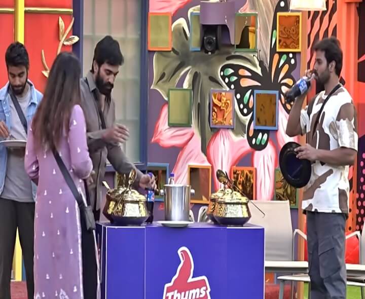 బిగ్‌బాస్-9 తెలుగులో కామనర్స్, సెలబ్రిటీల మధ్య తొలుత వార్ నడిచినా.. ప్రస్తుతం అందరూ ఫ్రెండ్స్‌గా కలిసిపోయారు. అయితే వైల్డ్ కార్డ్ ఎంట్రీల తర్వాత కథ మళ్లీ మొదటికొచ్చింది. ముఖ్యంగా దివ్వెల మాధురి నోటిదురుసుతో అందరినీ ఓ ఆట ఆడుకుంటోంది. తాజాగా బిస్‌బాగ్ హౌస్‌లో థమ్సప్ విత్ బిర్యానీ అనే టాస్క్ నిర్వహించారు. కంటెస్టెంట్లు రెండు టీములుగా విడిపోయి ఇందులో పాల్గొన్నారు. ఇరు జట్ల నుంచి డెమోన్ పవన్, దివ్వెల మాధురి పాల్గొన్నారు. బజర్ మోగేలోపు బిర్యానీకి కావాల్సిన వస్తువులను ఏ టీమ్ సభ్యులు ఎక్కువగా సేకరిస్తారో వారు టాస్క్ విజేతలుగా నిలిచి థమ్స్ అప్ విత్ బిర్యానీ ఎంజాయ్ చేయవచ్చని బిగ్ బాస్ తెలిపాడు. అనంతరం డెమోన్ పవన్, మాధురి ఇద్దరూ టాస్క్ ఆడగా డెమోన్ పవన్ విజేతగా నిలిచాడు. దీంతో డెమోన్ పవన్ అండ్ టీమ్‌కు థమ్స్ అప్ విత్ బిర్యానీ దక్కింది.